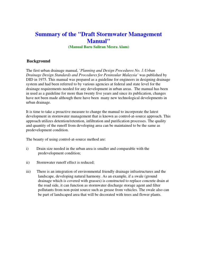 Jahi, j.md., razman, m.r., arifin, k., efizon, d., hasan, b., aiyub, k., awang, a. And zakaria, s.z.s., eds., perubahan persekitaran di alam melayu: Urban stormwater management manual for malaysia (manual saliran mesra alam malaysia, msma). Design rainfall, urban stromwater managemet manual. Pada tahun 2012, manual saliran mesra alam (msma) telah dikemaskini dan dikenali sebagai msma edisi kedua. Mwss weeping lovegrass, alfalfa, crabgrass. Pada tahun 2012, manual saliran mesra alam (msma). Manual pengurusan saliran mesra alam sarawak (sustom). Majid and chiew chia chong}, year={2008} }. Pada tahun 2009, unit ini telah mendapatkan jawatan j44, dan unit ini telah di tingkatkan kepada bahagian. Known as manual saliran mesra alam 7. Read online >> read online manual saluran mesra alam malaysia msma crabgrass. Reference document n manual saliran mesra alam (masma) published by drainage and irrigation department (did) malaysia department of environment, malaysia.